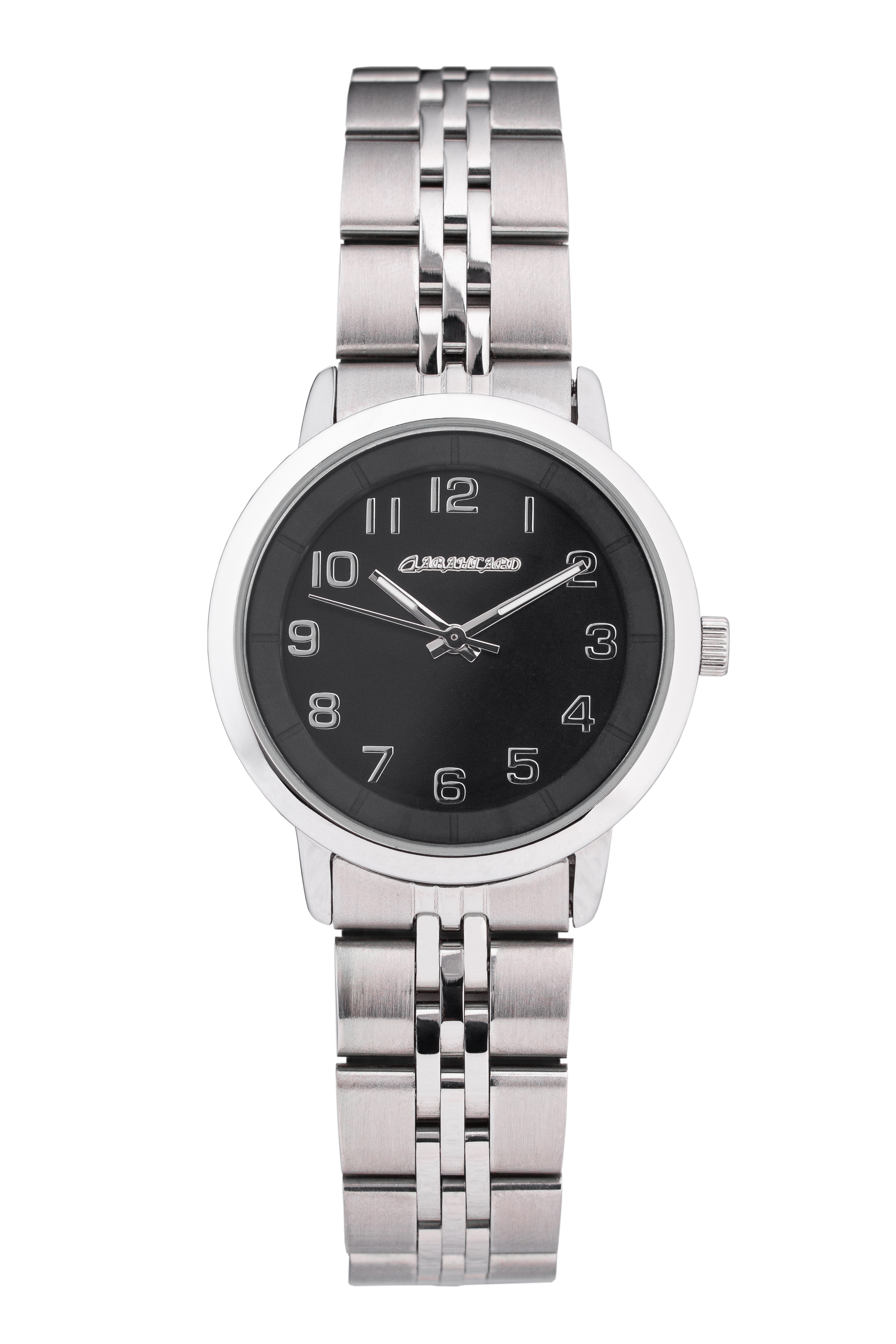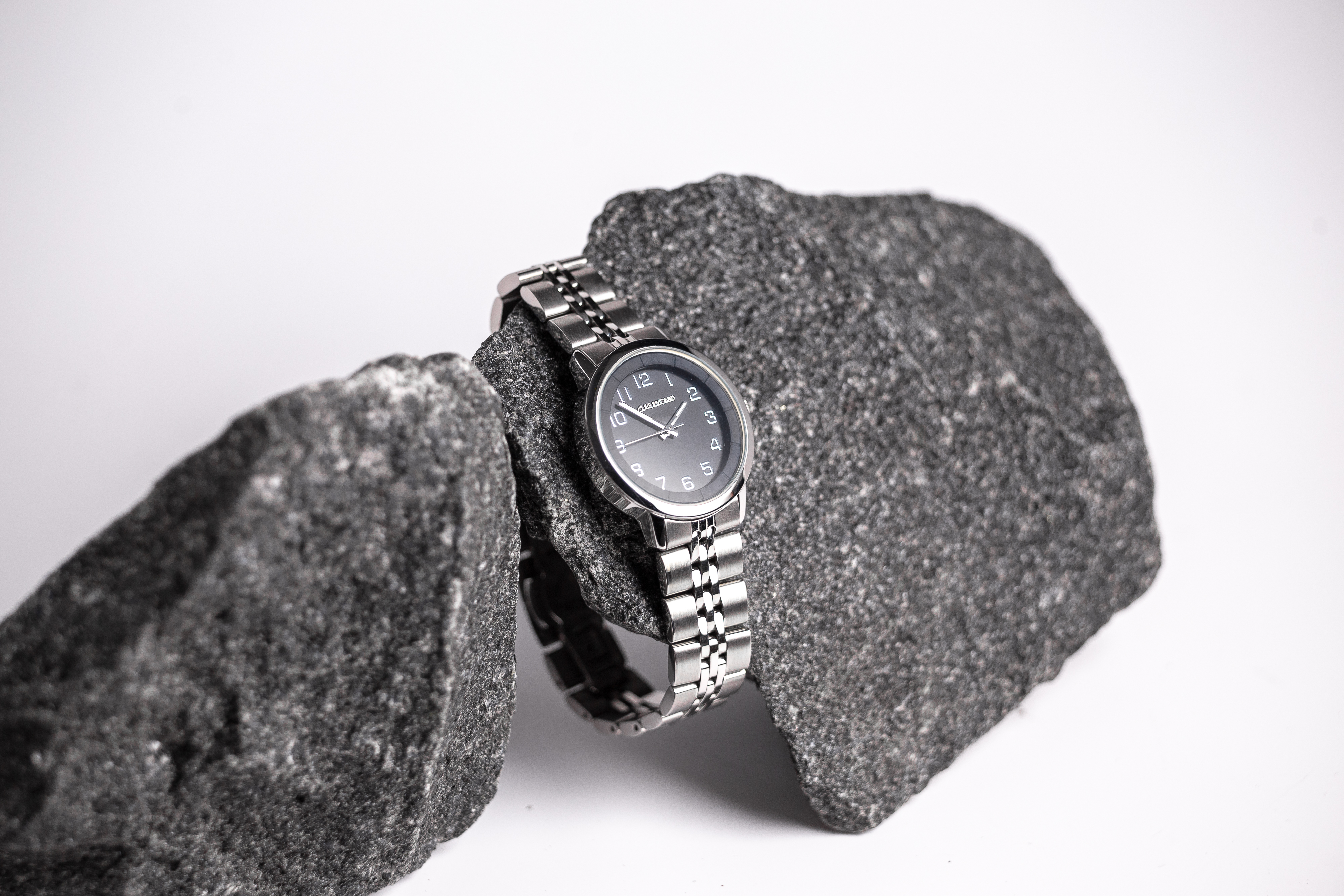 Дизайн модели представлен в двух классических цветовых решениях: с белым или черным циферблатом, что позволяет подобрать вариант под любой стиль одежды. Завершает образ стильный металлический браслет, который обеспечивает надежную фиксацию часов на запястье и добавляет изделию элегантности.