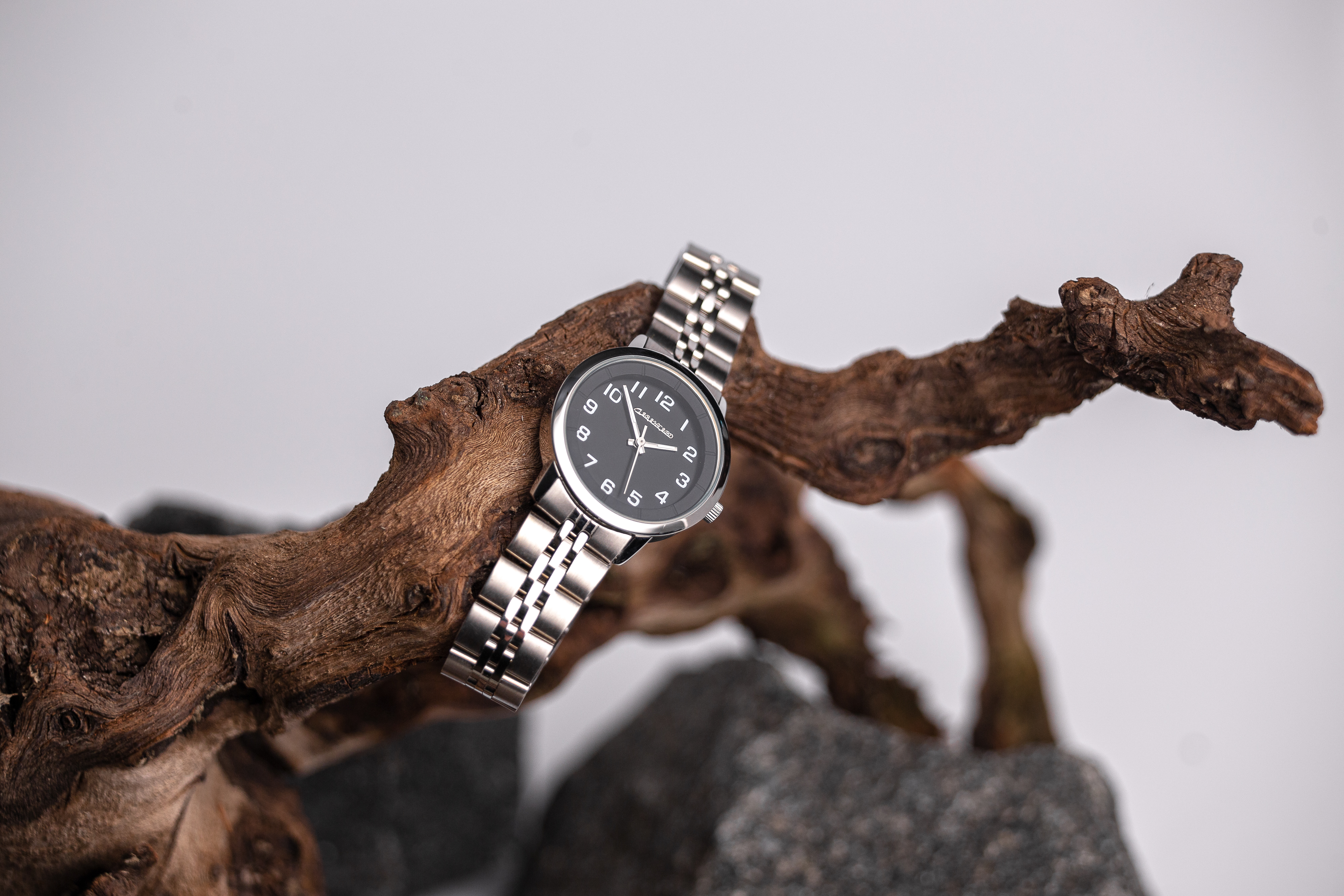 Элегантная модель часов привлекает внимание своим компактным размером и продуманным дизайном. Корпус диаметром 32 мм выполнен из высококачественной нержавеющей стали марки 316L, которая обеспечивает долговечность и устойчивость к внешним воздействиям. При толщине всего 8 мм часы комфортно сидят на запястье, не создавая лишнего объема.