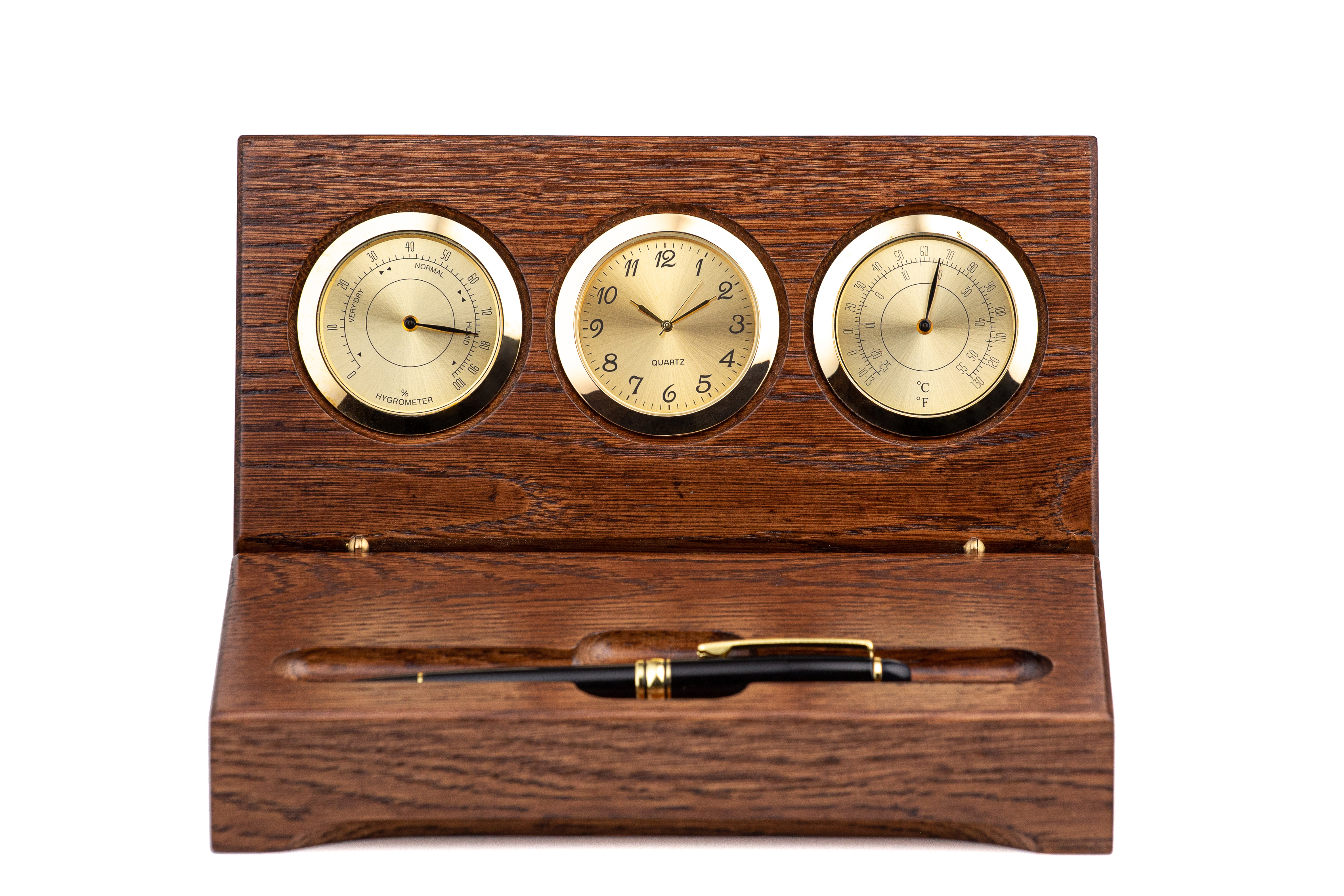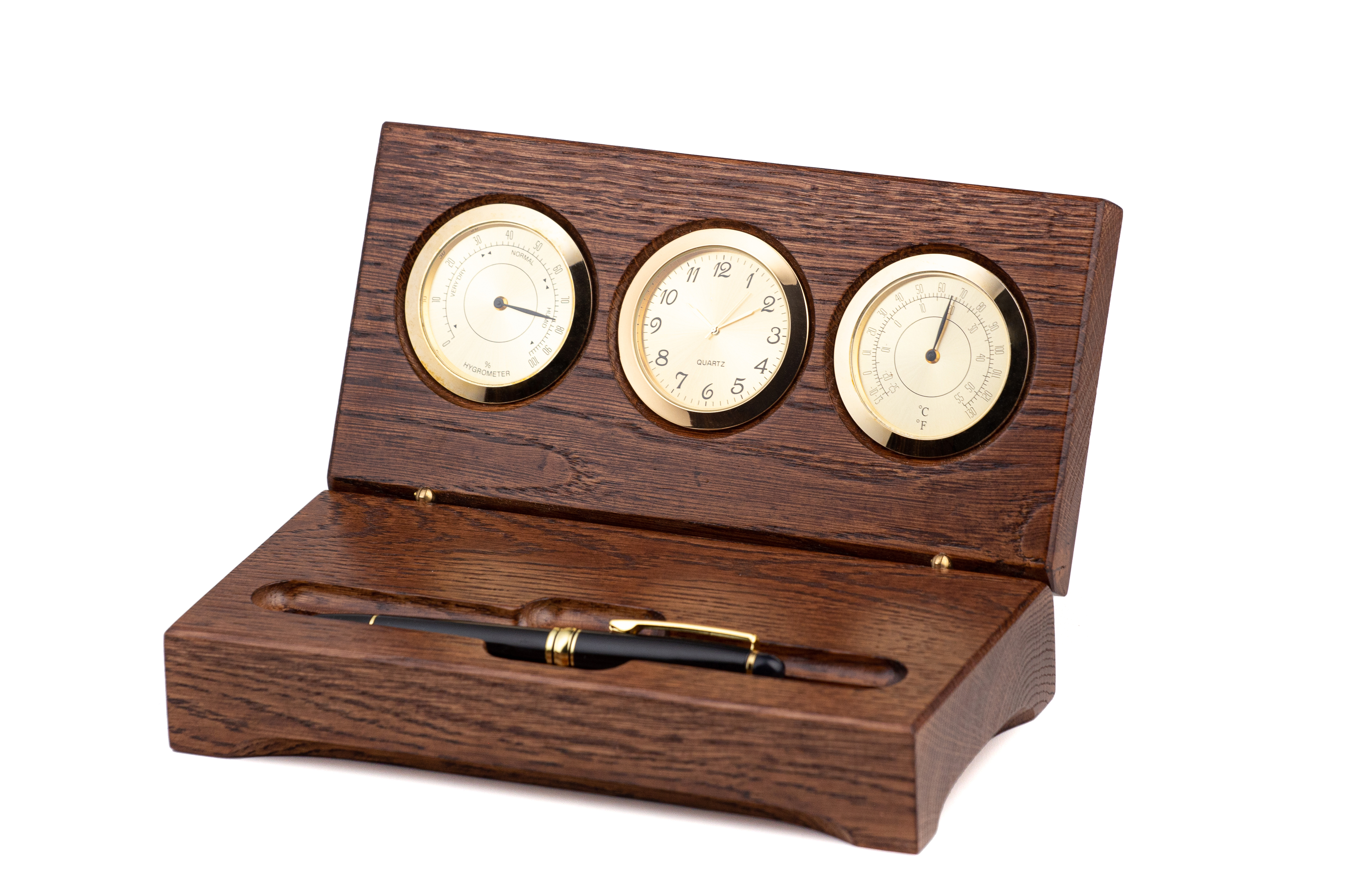 Комплектуется часовой капсулой (55мм), гигрометром(55мм) и термометром(55мм).